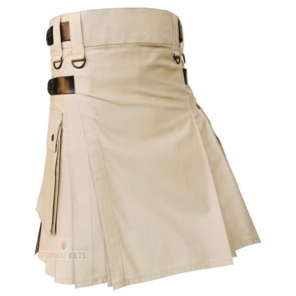 Khaki Hybrid Kilt With Leather Straps