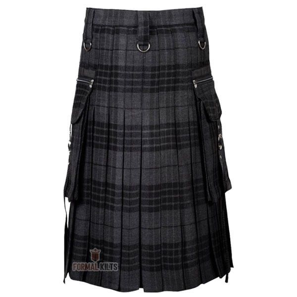 Punk Rock Gothic Grey Tartan Utility Kilt